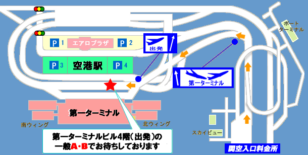 関空内の道順がご不安な方に、関空周辺でお待ち合わせし、同乗してターミナル前まで移動致します